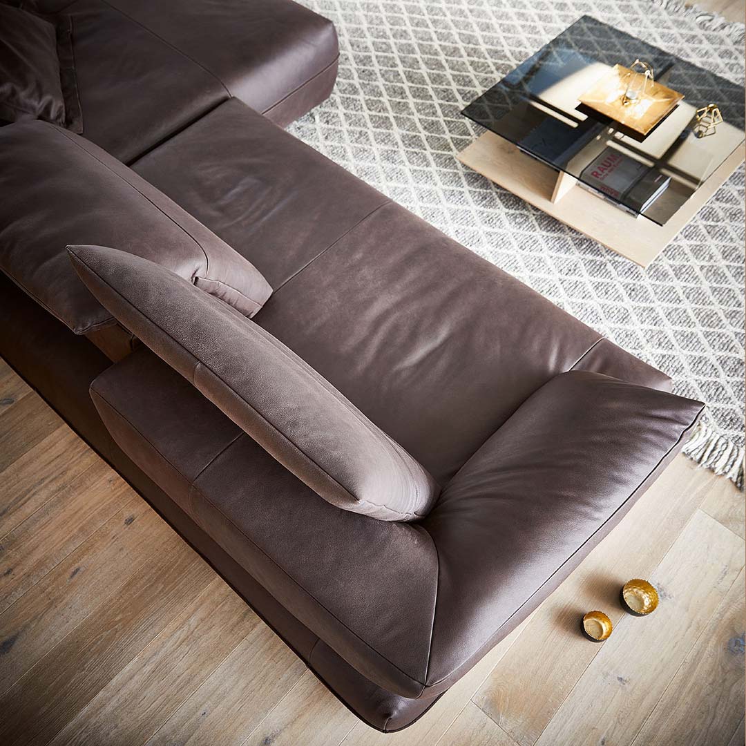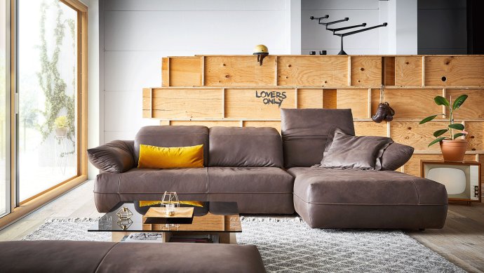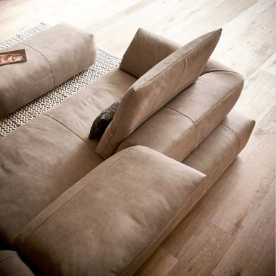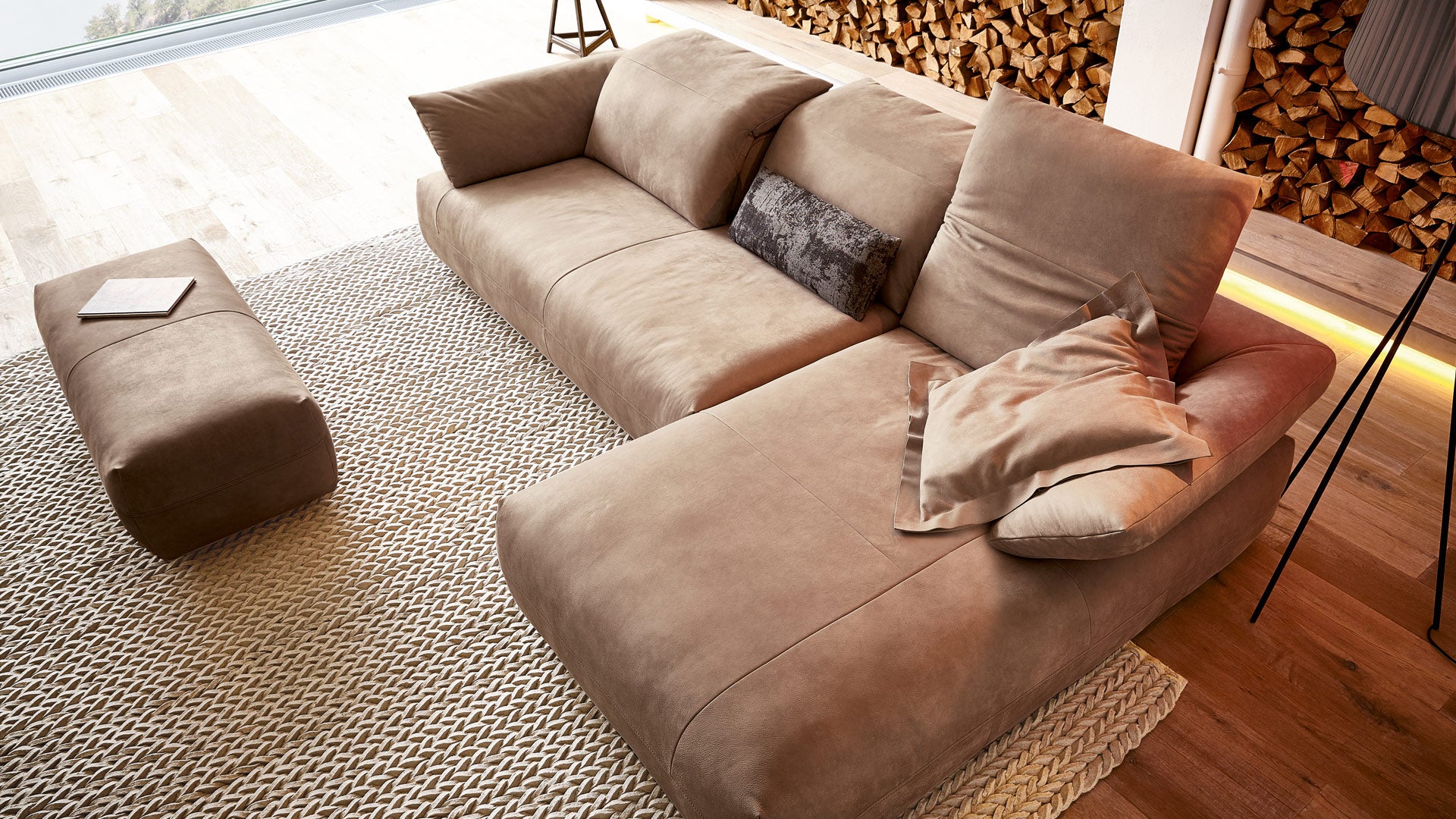 A truly private oasis of well-being for those relaxing hours at home. The perfect functional sofa for sitting and lounging – crafted in a trendy soft look. The particularly casual upholstery and super-soft surface transform this sofa into a relaxation oasis, inviting you to snuggle up.